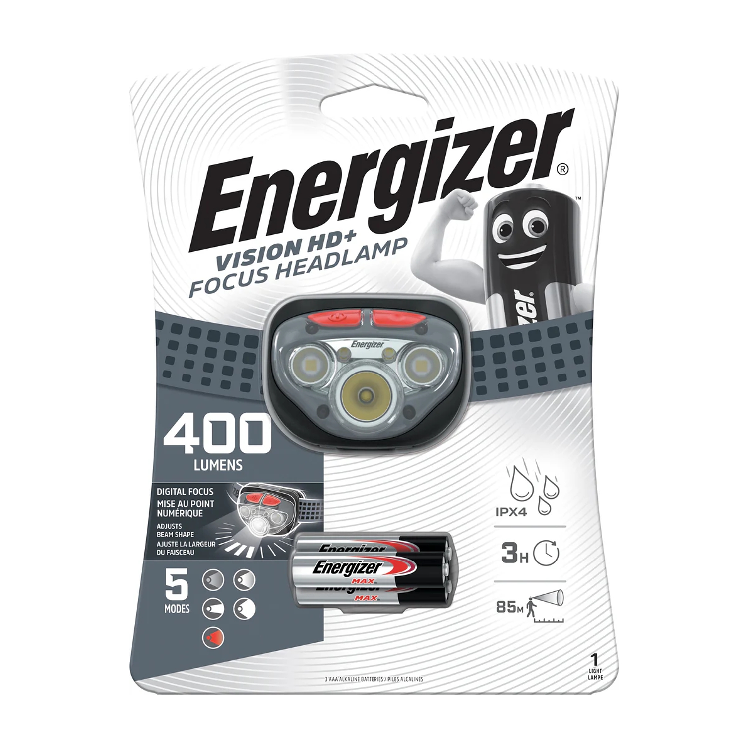 The Energizer® Vision HD+ Focus headlight is another innovative headlight solution within the Energizer premium headlight line. With the latest LED technology, users get an extraordinarily bright, lightweight hands-free solution with ample run time. Custom optics offer exceptional direct and peripheral vision, making the Energizer Vision HD+ Focus a perfect light for home, work and outdoor activities. Featuring patented digital focus, users can easily broaden or narrow their field of vision with a simple button press. Memory Recall allows users to quickly access to their favorite focus setting next time the light is activated. With an adjustable head strap, water-resistant design and pivoting head to direct light exactly as needed, Energizer continues to deliver innovative lighting solutions.